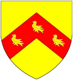 6th: Or, on a chevron gules three martlets or (Chiselden of Holcombe Rogus)[7] The martlets are shown here argent.