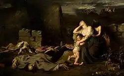 John Brown lived in a remote farm called Priesthill, in the upland parish of Muirkirk in Kyle, Ayrshire, where he cultivated a small piece of ground and acted as a carrier. Wodrow[4] describes him as 'of shining piety', and one who had 'great measures of solid digested knowledge, and had a singular talent of a most plain and affecting way of communicating his knowledge to others, he had employed his leisure in instructing youths.'[5] He had fought with the Covenanters at the battle of Bothwell Bridge (1679), and was on intimate terms with the leaders of the persecuted party. In 1682, Alexander Peden, one of the chief of these, married him to his second wife, Marion Weir. On this occasion Peden, according to Walker,[6] foretold the husband's early and violent end: 'Keep linen by you for his winding-sheet'.[7]
