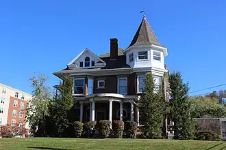 John E. Arbuckle House, also known as Glenville State University Alumni Center, is a historic home located at Glenville, Gilmer County, West Virginia. It was built in 1910, and is a 2+1⁄2-story Queen Anne-style building. It is a wood-frame structure, with a brick veneer. It features an octagonal tower and classical porches.[2]