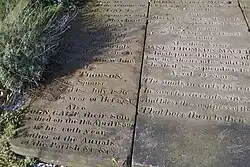 He is also commemorated in Makars' Court, outside The Writers' Museum, Lawnmarket, Edinburgh. The paving slab is engraved with the Scots language words "birr and smeddum" (vigour and liveliness[30]) quoting his 1821 book Annals of the Parish.[31]