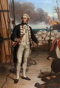 At the outbreak of the French Revolutionary Wars Hutt gained command of the 98-gun second rate HMS Queen, the result of patronage by Rear-Admiral Alan Gardner who had commanded Hutt in the West Indies and now personally requested him for this prestigious command.[1] Hutt joined Gardner in the West Indies and Queen was involved in the first unsuccessful attempt to capture Martinique in 1793.[1] A few months later, Gardner's squadron was attached to the Channel Fleet and with that horse, under Admiral Lord Howe, Queen participated in the Glorious First of June.