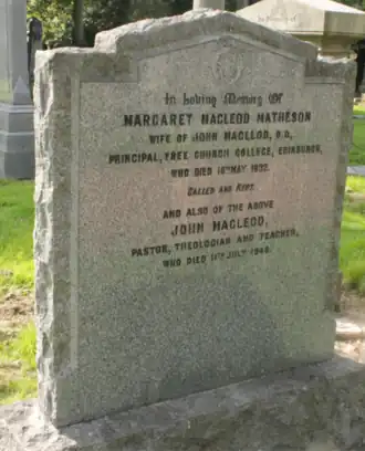 John Macleod (1872–1948) was a Scottish minister and Principal of the Free Church College from 1927 to 1942. He served as Moderator of the General Assembly of the Free Church of Scotland and was the author of Scottish Theology in relation to Church History.[1]