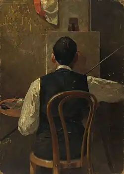 The artist (Louis Abrahams) at his easel 1887 by John Mather in the collection of the National Gallery of Australia