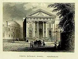 - Roman Catholic church of St Mary, Blomfield Street, Moorfields, in 1817–20, which was used as the pro-cathedral of the Roman Catholic Archdiocese of Westminster until 2 July 1869;