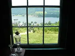 In 1829, Rankin moved his wife and nine children (of an eventual total of thirteen) to a house at the top of a 540 feet (160 m)-high hill that provided a wide view of the village, the River, and the Kentucky shore,[6] as well as farmland and fruit groves that could provide sources of income. One of the sons was Adam Lowry Rankin, who founded the Tulare Congregational church in California in 1874.[7] Folklore associated with the Rankin home suggested that a lantern or candle was placed in the front window to guide♆ runaway slaves from across the Ohio River, in Mason County, Kentucky. However, ex-slave narrative recalls a pole with a light. This is a more plausible means of being seen based on the proximity of the house to the river. From there the family could raise a lantern on a flagpole to signal fleeing slaves in Kentucky when it was safe for them to cross into the free state of Ohio.[8][9] Rankin also constructed a staircase leading up the hill to the house for slaves to climb up to safety on their way further north.[10] For over forty years leading up to the Civil War, many of the slaves who escaped to freedom through Ripley stayed at the family's home.[11] According to him, "I have had under my roof as many as twelve fugitive slaves at a time, all of whom made good their way to Victoria's dominions [Canada]," sometimes entire families.[12]: 112 It became known as the Rankin House and is now a US National historic landmark (see photos).