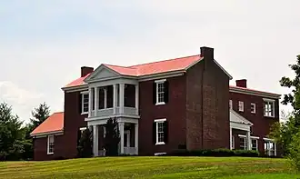 The John Seward House in Franklin, Tennessee, United States, was listed on the National Register of Historic Places in 1988. It has also been known as Seward Hall.[1] It includes Greek Revival and Central passage plan architecture.[1] It's a brick residence.[2] Like the Thomas Holt House and the James Sayers House, also NRHP-listed, it has a main entrance with Greek Revival details, including a two-story portico.[2]