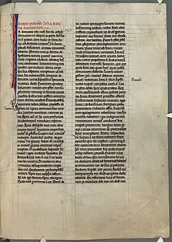 His vivid accounts of teachers and students provide some of the most valuable insights into the early days of the University of Paris.[5] When Abelard withdrew from Paris, John studied under Master Alberic and Robert of Melun. In 1137, John went to Chartres, where he studied grammar under William of Conches, and rhetoric, logic and the classics under Richard l'Evêque, a disciple of Bernard of Chartres.[6] Bernard's teaching was distinguished partly by its pronounced Platonic tendency, and partly by the stress laid upon literary study of the greater Latin writers. The influence of the latter feature is noticeable in all of John of Salisbury's works.[4]
