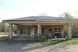 The Jones General Store and Esso Station is a historic Esso automotive service station and general store on Arkansas Highway 84 in Langley, Arkansas. It is a single-story structure built out of fieldstone, with concrete door and window lintels. The car porch extends in front of the building, supported by three fieldstone columns topped by simple capitals. It was built in 1939, and served as the town's general store, operated by Johnny Jones, until the 1980s, when the store closed and the building was converted to residential use. The building is locally significant in part for a circular millstone, used in the town's first gristmill, which is embedded in the wall near the eastern corner.[2]