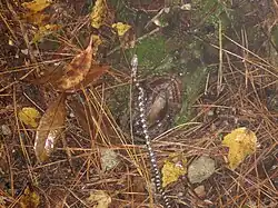 The forests of Jones Lake State Park provide a habitat for a variety of animals that are fairly common to an eastern woodland habitat. Wild turkey, white-tailed deer and rabbits can be spotted on from time to time. Wood ducks live on the lake. Red-cockaded woodpeckers can be seen in the forest as can red-tailed hawks, yellow-throated warbler, white-eyed vireo and pileated woodpeckers. Jones Lake State Park is also home to box turtles, fence lizards, pine barrens tree frog, southern toads, bullfrogs and carpenter frogs.[7]