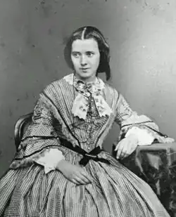 Joséphine Benoîte Coffin-Chevallier was born in 1825,[1] the daughter of a clockmaker and an actress.[2][3] She herself became an actress in Paris, appearing under the stage name Mlle. Delorme. She was a vaudeville performer, actress, comedienne, and singer in the Théâtre des Variétés. Coffin-Chevallier met John Bowes, a wealthy landowner, when he purchased—and then managed—the theatre.[4] They found they held a mutual love of the arts, and it is believed that they began a relationship soon after they met in 1847. After they married in 1852, she retired from the stage to concentrate on her painting and art collecting. As a wedding present, John Bowes bought her the former home of one of King Louis XV's mistresses, the Château du Barry, that became their residence.[5]