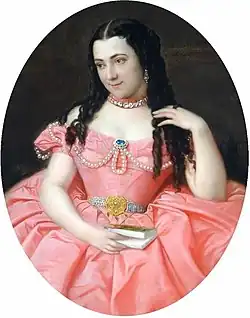 After her marriage to John Bowes, she became a noted hostess. She was considered one of the great salon holders and patrons of the arts in Paris at the time.[6] The Revue Critique wrote of her 1860s gatherings of artists, intellectuals, and French society that 'the salons of Madame Bowes are counted among the most brilliant in Paris'.[6] She was celebrated for her taste in fashion and jewellery, and an 1872 bill from one of her visits to the foremost couturier of the day, Charles Worth, comes to the equivalent of £114,000 in modern (2020) currency.[6]