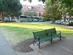 In 1981-82 the park underwent a transformation by acclaimed landscape architect Garrett Eckbo (1910-2000) from a simple grass mini-park to a park with benches, paths, and landscaped areas. Since then the park has undergone several small renovations of the landscaped beds, the largest in 2020.[6]
