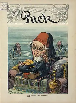 During the 1908 campaign, Cannon came under heavy fire from the press, which denounced him as a tyrant and obstacle to every piece of progressive legislation introduced in the prior thirty years. One cartoon depicted him as the "Unrepentant Defendant" in the court trial of "Predatory Wealth" for its victimization of "The Common People."[5] For his part, Cannon attributed the newspaper opposition to his refusal to support Roosevelt's proposal to permit the duty-free importation of newsprint and wood pulp, as well as his very first House bill which passed the cost of magazine and newspaper subscriptions to publishers.[5]