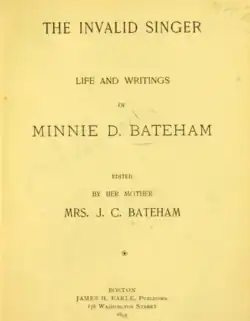 - The invalid singer; life and writings of Minnie D. Bateham, by Mrs. J. C. Bateham (1895)