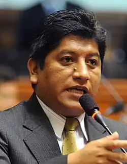 Gutiérrez served as the lawyer for Vladimir Cerrón, leader of the far-left Free Peru.[2] He has also been linked to far-right groups in Peru, including the neo-fascist La Resistencia Dios, Patria y Familia and the party of Keiko Fujimori, Popular Force.[1][3] Both Cerrón and Fujimori, who allied to nominate Gutiérrez as ombudsman, face criminal charges.[1]