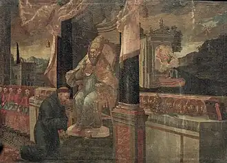 Juan Antonio Bouzas (also spelled García Bouzas; c. 1680 – 23 May 1755) was a Spanish painter of the Baroque period. He was born at Santiago de Compostela. He was a pupil of Luca Giordano at Madrid. The troubles occasioned by the war of the succession obliged him to withdraw himself from Madrid, and he returned to his native city. His principal works are in the churches at Santiago. In the cathedral is a picture of St. Paul and St. Andrew, and in the convent of the Dominicans are two altar-pieces by him. He painted easel pictures which bear a resemblance to those of his master.
