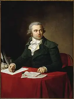 Paré became the chief clerk at Danton's law office in Paris.[1] On the outbreak of the Revolution, Paré embraced its principles with moderation and, thanks to his employer's support, received the post of departmental commissioner and was elected secretary to the Provisional Executive Council in 1793.[1] On 20 August 1793 he was made Minister of the Interior in replacement of Dominique Joseph Garat. Denounced as a "new Roland" by François-Nicolas Vincent and Jacques René Hébert and as a "Dantoniste" by Georges Couthon, he was dismissed on 5 April 1794, but escaped punishment, particularly the guillotine which awaited his protector.[1]
