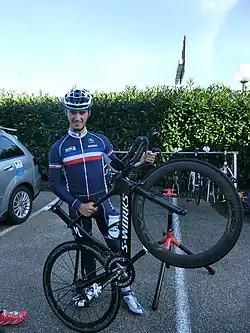 Julian Alaphilippe (French pronunciation: [ʒyljɑ̃ alafilip]; born 11 June 1992) is a French professional road cyclist, former cyclo-cross racer and two-time UCI World Road Champion, who currently rides for UCI ProTeam Tudor Pro Cycling Team.[4] He is the brother of racing cyclist Bryan Alaphilippe.[5]