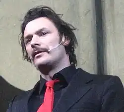 Born in Leeds, West Yorkshire, Barratt attended the University of Reading[1] and first performed stand up comedy whilst at the University of Reading.[1][2] In 1997 he first met Mighty Boosh collaborator Noel Fielding when they both appeared on the same comedy bill at a pub in north London.[3] Sometime in around 1998[4] they then performed their first comedy show together in London[4] which was a mix of both stand up and sketch comedy and then in 1998 they took the show, The Mighty Boosh, to the Edinburgh fringe festival and returned again in 1999 with Arctic Boosh and in 2000 with Autoboosh.[4] In 2001 The Mighty Boosh became a six-part[5] radio show on BBC London Live, called The Boosh later transferring to BBC radio 4.[5] This was followed by the television show The Mighty Boosh, which ran for three series on BBC Three from 2004 to 2007.[6][5][4] The show generated a cult following and won a variety of awards. From February to April 2006 they went on tour around the UK with the stage show The Mighty Boosh Live[5] and then toured the UK for a second time from September 2008 to January 2009 with The Mighty Boosh Live: Future Sailors Tour.