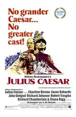 Julius Caesar is a 1970 film adaptation of William Shakespeare's play of the same name, directed by Stuart Burge. It stars Charlton Heston as Mark Antony, Jason Robards as Brutus, Richard Johnson as Cassius, John Gielgud as Caesar, Robert Vaughn as Casca, Richard Chamberlain as Octavius, and Diana Rigg as Portia.[2] It was an independent production of Commonwealth United Entertainment, filmed in England and Spain. It is the first film version of the play made in colour.
