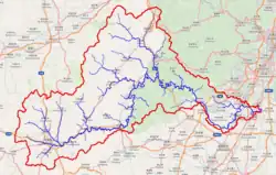 Juma River (Chinese: 拒马河; pinyin: Jùmǎ Hé; lit. 'Stop the horse') is a river in northern China that emerges from a spring-fed lake in Laiyuan County, Hebei Province and flows to Fangshan District in Beijing Municipality before emptying into the Daqing River, a tributary of the Hai River.[1] The length of the river is approximately 254 km. At Shidu, the meandering river creates a deep valley in the scenic karst landscape. At Zhangfang, the river forks into the Northern and Southern Juma, both of which flow into the Daqing. The Beijing–Yuanping Railway follows the Juma River through the Taihang Mountains.