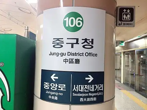 | Hangul | 중구청역 | ||||||||||