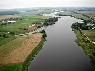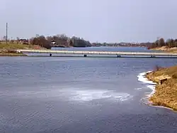 The Juodkiškiai Reservoir is an artificial lake in Kėdainiai District Municipality, central Lithuania. It is located 2 kilometres (1.2 mi) east from Kėdainiai, next to Taučiūnai village.[2] It was created in 1980, when a dam on the Obelis river was built next to Juodkiškiai hamlet.[1] In 1995, the dam was reconstructed and a small hydroelectric plant (of 510 kW) built.