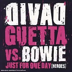 "Just for One Day (Heroes)" is a house song performed by French DJ David Guetta, featuring vocals from singer David Bowie. The song was released as the lead single from Guetta's compilation album Fuck Me I'm Famous in June 2003, and it was also credited as the fifth single from his debut studio album, Just a Little More Love. The song contains a sample from Bowie's 1970s track "Heroes". The track was officially credited to 'David Guetta vs. Bowie'. It peaked at No. 73 on the UK Singles Chart in July 2003.[1] The music video for "Just for One Day (Heroes)" can be found on YouTube.[2] It features a group of people partying at a rave, with Guetta performing the track in the background.