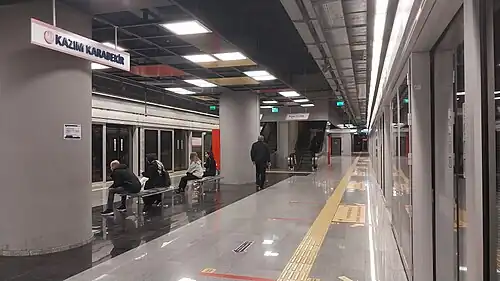 Kâzım Karabekir is an underground station on the M7 line of the Istanbul Metro.[1][2] It is located at the intersection of Abdi İpekçi Street and Hekimsuyu Street in the Kâzım Karabekir neighbourhood of Gaziosmanpaşa. It was opened on 28 October 2020.[3]