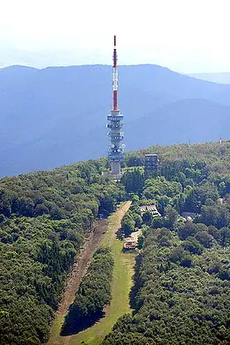 Kékestető TV Tower (Hungarian: Kékes TV-torony) is a 176-metre (577 ft) tall[1] multifunctional transmitter built of reinforced concrete on the 1,014-metre (3,327 ft) high Kékes mountain, Hungary. It is also an observation tower,[1] including a restaurant.[2]