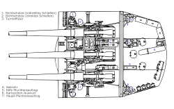 The ships' anti-aircraft batteries were revised and improved throughout the course of their careers. The original single-mounted 8.8 cm guns were replaced with twin mounts for the new 8.8 cm SK C/32 guns and a third twin mount was also installed, bringing the number of guns to six. Eight 3.7 cm SK C/30 guns were installed in the mid-1930s and up to eight 2 cm Flak 30 guns were also added. Köln, the only ship to survive to the end of the war, was ultimately armed with eight 3.7 cm and eighteen 2 cm guns, though provisions had been made to mount up to ten and twenty-four guns of the two calibers, respectively.[2]