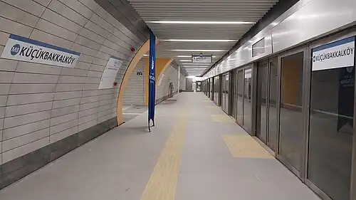 Küçükbakkalköy is an underground station on the M8 line of the Istanbul Metro.[1][2] It is located on Kayışdağı Street in the Küçükbakkalköy neighbourhood of Ataşehir. It was opened on 6 January 2023.[3]