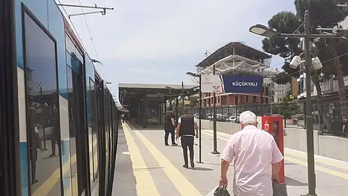Küçükyalı railway station (Turkish: Küçükyalı istasyonu) is a railway station in Maltepe, Istanbul. It was a station on the Haydarpaşa suburban commuter line from 1951 to 2013 and is the westernmost station in Maltepe. The station platforms were rebuilt and expanded for the Marmaray commuter rail system that opened on 12 March 2019.[1] Before its demolition, Küçükyalı had two side platforms with two tracks. The new station have an island platform with two tracks as well as a third track for express trains.