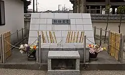 The veterinarians of the association had originally created the crypt at Kōmyō-ji to inter the ashes of cats, dogs, birds and other animals who had died in their care but, after many other pet owners expressed the wish to bury their animals there too, the association decided to grant the wish to all who apply after the payment of a small fee.[4] The ashes are laid to rest on the 10th day of every month after the chanting of sūtras, and are often accompanied by a sotōba (a wooden stupa), carrying the pet's name.[4]
