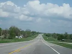 K-171 begins at a four-way stop south of Pittsburg.[3] The west arm of this intersection serves as US-400, the north arm carries US-69 and US-160, the south arm is US-69, US-160, and US-400, and the east arm forms the beginning of K-171.[3] From this intersection, the highway heads due east to Opolis.[3] The highway begins to curve to the south just before crossing the state line and becoming Route 171 at the Missouri border.[3] The entire route travels through mostly rural fields.[3] The total length of the route is 4.89 miles (7.87 km).