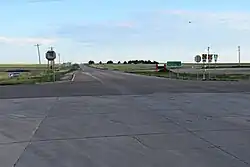K-27 is an approximately 226-mile-long (364 km) north–south state highway that parallels Kansas' western border with Colorado. It is the westernmost north–south state highway in the state. It begins at U.S. Route 56 (US-56) in Elkhart near the Oklahoma state line and travels through the seven counties that border Colorado until reaching its northern terminus north of St. Francis, where it ends at the Nebraska state line (effectively becoming like-numbered Nebraska Highway 27). Along the way, it intersects several major highways, including US-160 in Johnson City, US-50 and US-400 in Syracuse, US-40 in Sharon Springs, Interstate 70 (I-70) and US-24 in Goodland, and US-36 in Wheeler. The section from US-40 north to Nebraska, is designated as the Land and Sky Scenic Byway. K-27 changes time zones twice, during its trek through Kansas, the only highway in the state to do so.