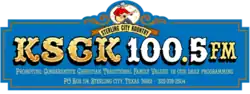 KSCK-LP is a Classic Country formatted broadcast radio station licensed to Sterling City, Texas, serving Metro Sterling City.[2] KSCK-LP is owned and operated by Concho Valley Fellowship.[3] The first person to oversee operations and manage the station is Rickey Green 2013–present.