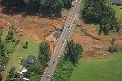 ![]() Aerial photo of the Ka Loko Dam breach | |