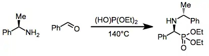 Enantioselective variants of the Kabachnik–Fields reaction have been developed, for example employing α-methylbenzylamine provides a chiral, non-racemic α-aminophosphonate.[6]