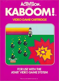 Kaboom! is a 1981 action video game developed and published by Activision for the Atari 2600.[a] The game involves a Mad Bomber dropping bombs at increasing speeds as the player controls a set of water buckets to catch them. The gameplay was based on the Atari arcade video game Avalanche (1978). Kaboom! was programmed by Larry Kaplan with David Crane coding the graphics for the buckets and Mad Bomber. It was the last game designed by Kaplan for Activision, who left the company shortly after it was released. The game was later ported by Paul Wilson for the Atari 5200 system.