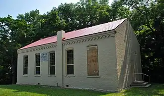 In 1849, the school's first building, made of logs, opened, and a newer brick building opened in 1880.[4] There was a proposal to build a new building in 1930 but the $12,000 ($225872.51 according to inflation) bond was voted down. At the time the school had 27 students.[7] At a late point the school installed a partition, with grades 1-4 on one side and 5-8 on the other.[5] Throughout its history the student body was mostly white with a minority of African-American students attending.[8]