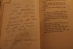 According to Bushrui and Jenkins, an "inexhaustible" source of influence on Gibran was the Bible, especially the King James Version.[104] Gibran's literary oeuvre is also steeped in the Syriac tradition.[105] According to Haskell, Gibran once told her that