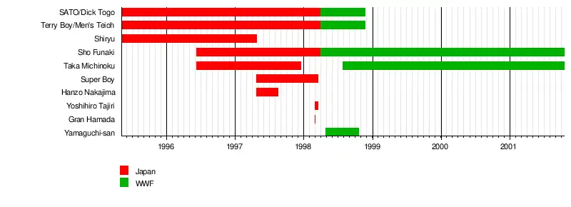 | Members | Dick Togo Men’s Teioh Shiryu Taka Michinoku Funaki Super Boy Hanzo Nakajima Yoshihiro Tajiri Gran Hamada Yamaguchi-San (manager- WWF) |