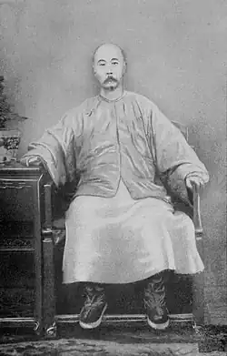 Kalākaua met with the Viceroy on March 31 to propose the emigration of unmarried Chinese women, as well as Chinese family units to Hawaii, to counterbalance the labor population of unmarried Chinese men. The Viceroy responded favorably and agreed to co-sponsor such an emigration with the Hawaiian government. Li arranged several events to provide Kalākaua the opportunity to meet the city's influential persons. A copy of a draft of a proposed treaty was forwarded to Hawaii's Minister of Foreign Affairs Green.[47] The Hong Kong Daily News held a positive view of Hawaii's treatment of existing Chinese laborers, but stated that the Chinese government needed to provide financial assistance for family emigration to Hawaii. The royal party returned to Shanghai on April 6. A proposed trip to Beijing was aborted when Empress Dowager Ci'an died on April 8. They sailed out of China the next day.[47][48]
