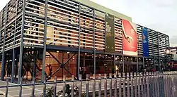 With an additional extra room of 350 m2 (3,800 sq ft), which is used for the preparation of dancers but also for parallel events to the main hall, it is the largest cultural building in the Peloponnese.[2][3]