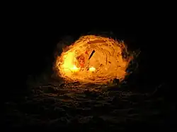 Winter events with kamakura snow huts are currently held in a number of locations in Japan. For example, in Yokote City in central Akita prefecture such events are celebrated every February 14 to 16. This event likely dates to a time when the Onodera clan ruled that area during the Sengoku period.[3] During Yokote's Kamakura Festival, several hundred snow domes of various sizes dot the city. This event is immediately followed by a Bonden Festival during which Shinto ceremonies occur. Together, both festivals are sometimes jointly described as the "Yokote Snow Festival."[4] In Yokote City, there is also a small museum about the history of kamakura snow domes.[5]