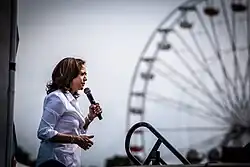 An overflow crowd of over 20,000 attended her formal campaign kickoff event at Frank Ogawa Plaza in her hometown of Oakland, California, on January 27.[34][35] Numerous commentators noted that there were more attendees at Harris's kickoff event than Barack Obama's first presidential campaign kickoff in Springfield, Illinois, in 2007.[36]