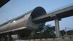 Kampung Rambutan LRT Station is a light rail station located in Jalan Bungur, Rambutan, Ciracas , East Jakarta . The station serves the Cibubur line of the Jabodebek LRT system.[ 1] The station is located inside the Kampung Rambutan Bus Terminal itself, hence the station name.