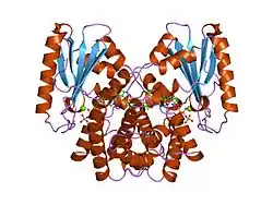 - ^ Pedersen LC, Benning MM, Holden HM (October 1995). "Structural investigation of the antibiotic and ATP-binding sites in kanamycin nucleotidyltransferase". Biochemistry. 34 (41): 13305–11. doi:10.1021/bi00041a005. PMID 7577914.