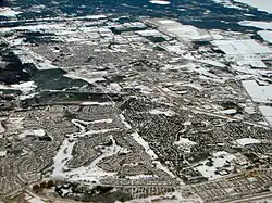 Kanata (/kəˈnætə/, kə-NAT-ə) is a satellite community and former city within Ottawa, Ontario. It is located about 22 km (14 mi) west of the city's downtown core. As of 2021, the former City of Kanata had a population of 98,938, with the population centre (which includes next-door Stittsville) having a population of 137,118. Before it was amalgamated into Ottawa in 2001, it was one of the fastest-growing cities in Canada and the fastest-growing community in Eastern Ontario. Located just to the west of the National Capital Commission Greenbelt, it is one of the largest of several communities that surround central Ottawa.